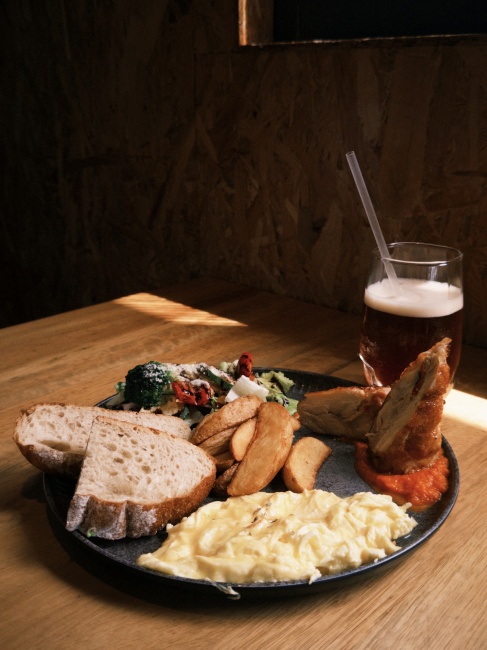 炒蛋吃起來很滑嫩,可以搭配歐式麵包一起享用,但溫度稍微冷掉之後會開始變硬,建議大家可以趕快享用。