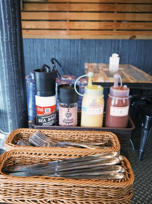 檸檬切片水、醬料,以及餐具皆為自助式取用。
