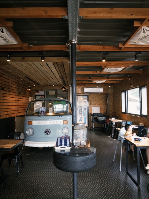室內保留了當初原本的模樣,雖然少了一些復古擺件,但福斯麵包車所改裝而成的飲料製作吧台仍豎立在店內。然後CHILL SEA有提供兒童座椅,如果是帶小孩來用餐的也不需要自備椅子。