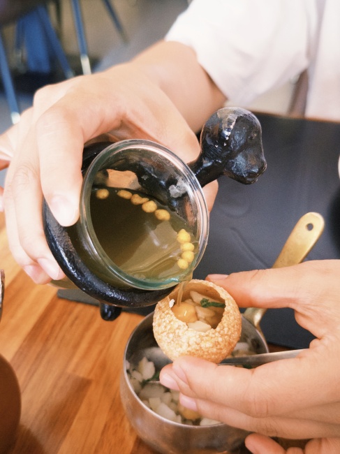 從以往在Netflix上所看到的印度電影或影集,凡舉街邊小吃,或是婚喪喜慶,都會有這道經典的瑪莎拉薄荷脆脆球,也激起了我對於這在地小點的好奇心,說什麼都要點來試試看。