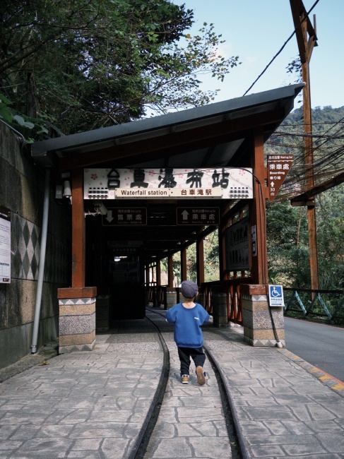 很快就抵達了今天烏來觀光台車的終點「台車瀑布站」,而如果想要去雲仙樂園遊玩的旅客,下車後步行往前約100公尺左右,右手邊就能看到纜車站的搭乘處。