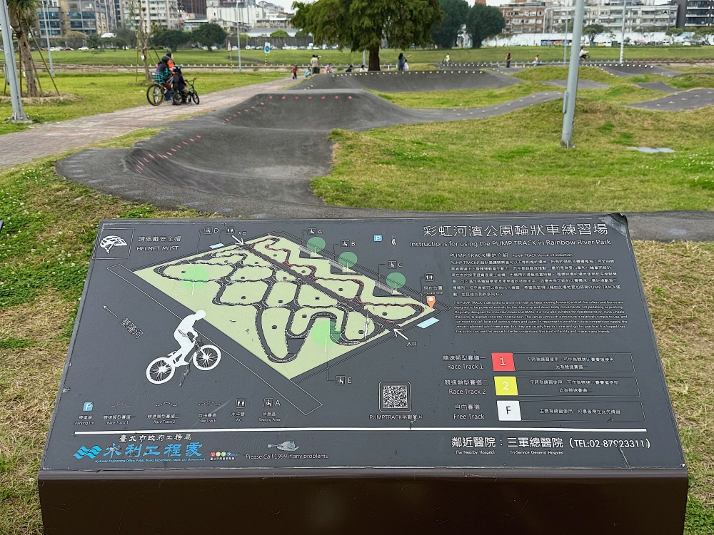 Pump Track是指沒有固定起終點,練習者能夠不斷往前騎行的一種場地型運動,而彩虹河濱公園輪狀車練習場所創立的初衷就源自於此。