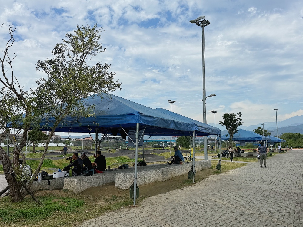 輪狀車練習場競技賽道1的旁邊就有一頂一頂帳篷提供民眾休息,而靠近遠處自由賽道F的大樹下也有石椅能夠坐著。