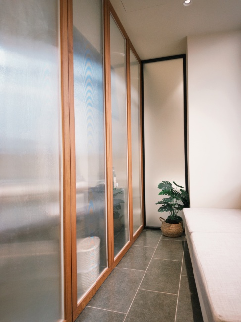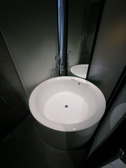 將衛浴分開成兩間,雖然淋浴及泡澡空間稍嫌小是有點不足的部分之外,但整體灰色系的簡約風格我很喜歡,另外圓形浴缸可以和家人們一起玩水,也是有加分到的部分。